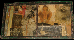 Gaylord Pasternak Was born an illegitimate child to the Russian poet and writer Boris Pasternak and an unknowns circus sideshow bearded lady. They met while Pasternak was traveling in America to promote his epic novel, Doctor Zhivago. It is unknown when and at which traveling show they happened to meet, but it is believed to be somewhere between Baltimore and Albany, during the 1970's. The bearded lady named and kept Gaylord in a wicker basket, trying to conceal his existence to her employers. He was often deprived of air and dropped on his head repeatedly, leading to mild mental retardation. Eventually she was forced to give him up, and Gaylord was left on a doorstep in Pensacola, Florida. Here he was taken in by a Baptist minister who tried to teach Gaylord the ways of the Bible and beat him with a nail-studded stick daily. It was then that Gaylord developed his aversion to religion and organization of any kind. He also learned to cut pieces of the pages of the Bible and rearrange the words into his own text. Even at this early age, the spirit of resistance and independence was alive and well within his soiled loins. Gaylord was adopted by a family of cast characters at Walt Disney World, and would soon be the child performer behind the mask and costume of Dopey from Snow White. A tragic incident involving an evil rich girl taunting him with a dirt covered candy apple led Gaylord to flee on foot with his Dopey mask and no pants. He made it. A Midwest train led Gaylord to Kansas where he was recruited as a farm labor hand on an organic spelt plantation. He learned the ways of farming and masturbation. The wild lands and open spaces of the Midwest could not tame Gaylord. He sought the populated centers of his adoptive country and all of the glorious stagnation that they offered. New York City. Gaylord fell in with the roving gangs of homeless teenage children and vagrants. He learned the ways of the streets and performance artists in Greenwich Village. He soon became a member of a murderous gang know as Anti-Friend Hut. Led by the criminally insane mastermind Crank Sturgeon and ruthless enforcer of vigilante laws Clog Wornago, the trio would wreak havoc on deserving and not-so deserving peoples of nefarious and stand-up character. Their twisted interpretation of performance art, mental robberies and public exploits of existence would become the stuff of forgotten legends. The Hut was dissolved by the International Tribunal in The Hague for crimes against humanity, indecent public exposure and also just being all around jerks. Now Gaylord makes collages on his own. If you ask him about any of his work, he will say, "It is what it is. Maybe give me a hotdog now. Mmmmmmrrrrrggggghhh, bye."