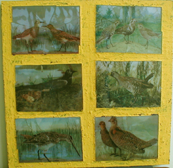 Gaylord Pasternak Was born an illegitimate child to the Russian poet and writer Boris Pasternak and an unknowns circus sideshow bearded lady. They met while Pasternak was traveling in America to promote his epic novel, Doctor Zhivago. It is unknown when and at which traveling show they happened to meet, but it is believed to be somewhere between Baltimore and Albany, during the 1970's. The bearded lady named and kept Gaylord in a wicker basket, trying to conceal his existence to her employers. He was often deprived of air and dropped on his head repeatedly, leading to mild mental retardation. Eventually she was forced to give him up, and Gaylord was left on a doorstep in Pensacola, Florida. Here he was taken in by a Baptist minister who tried to teach Gaylord the ways of the Bible and beat him with a nail-studded stick daily. It was then that Gaylord developed his aversion to religion and organization of any kind. He also learned to cut pieces of the pages of the Bible and rearrange the words into his own text. Even at this early age, the spirit of resistance and independence was alive and well within his soiled loins. Gaylord was adopted by a family of cast characters at Walt Disney World, and would soon be the child performer behind the mask and costume of Dopey from Snow White. A tragic incident involving an evil rich girl taunting him with a dirt covered candy apple led Gaylord to flee on foot with his Dopey mask and no pants. He made it. A Midwest train led Gaylord to Kansas where he was recruited as a farm labor hand on an organic spelt plantation. He learned the ways of farming and masturbation. The wild lands and open spaces of the Midwest could not tame Gaylord. He sought the populated centers of his adoptive country and all of the glorious stagnation that they offered. New York City. Gaylord fell in with the roving gangs of homeless teenage children and vagrants. He learned the ways of the streets and performance artists in Greenwich Village. He soon became a member of a murderous gang know as Anti-Friend Hut. Led by the criminally insane mastermind Crank Sturgeon and ruthless enforcer of vigilante laws Clog Wornago, the trio would wreak havoc on deserving and not-so deserving peoples of nefarious and stand-up character. Their twisted interpretation of performance art, mental robberies and public exploits of existence would become the stuff of forgotten legends. The Hut was dissolved by the International Tribunal in The Hague for crimes against humanity, indecent public exposure and also just being all around jerks. Now Gaylord makes collages on his own. If you ask him about any of his work, he will say, "It is what it is. Maybe give me a hotdog now. Mmmmmmrrrrrggggghhh, bye."